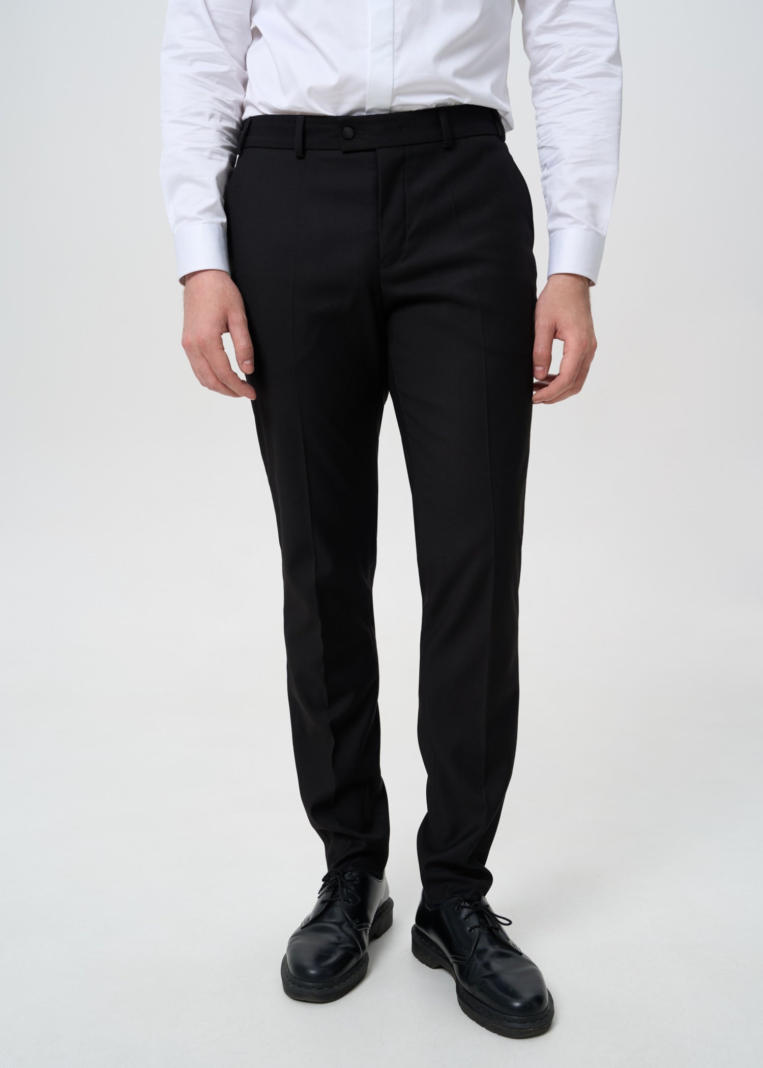 Чоловічі брюки Andreas Moskin — це сучасна інтерпретація класичного tailoring із акцентом на чисті лінії та бездоганну посадку. Лаконічний чорний колір підкреслює універсальність моделі, роблячи її ідеальною основою для формальних образів, вечірніх виходів і smart formal стилю.