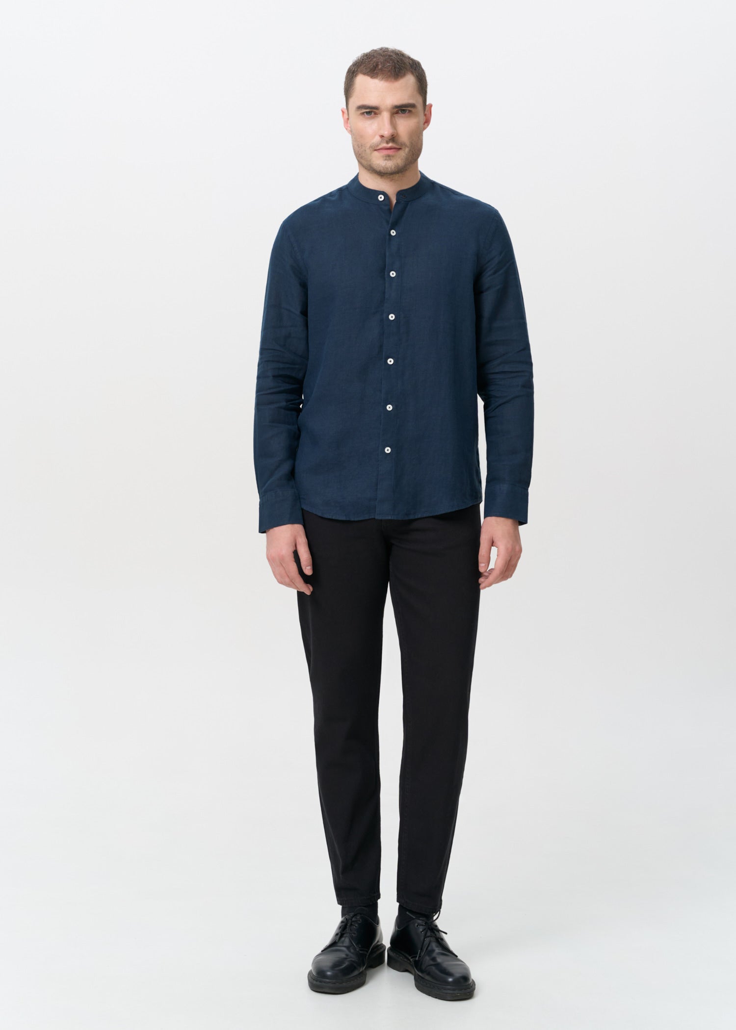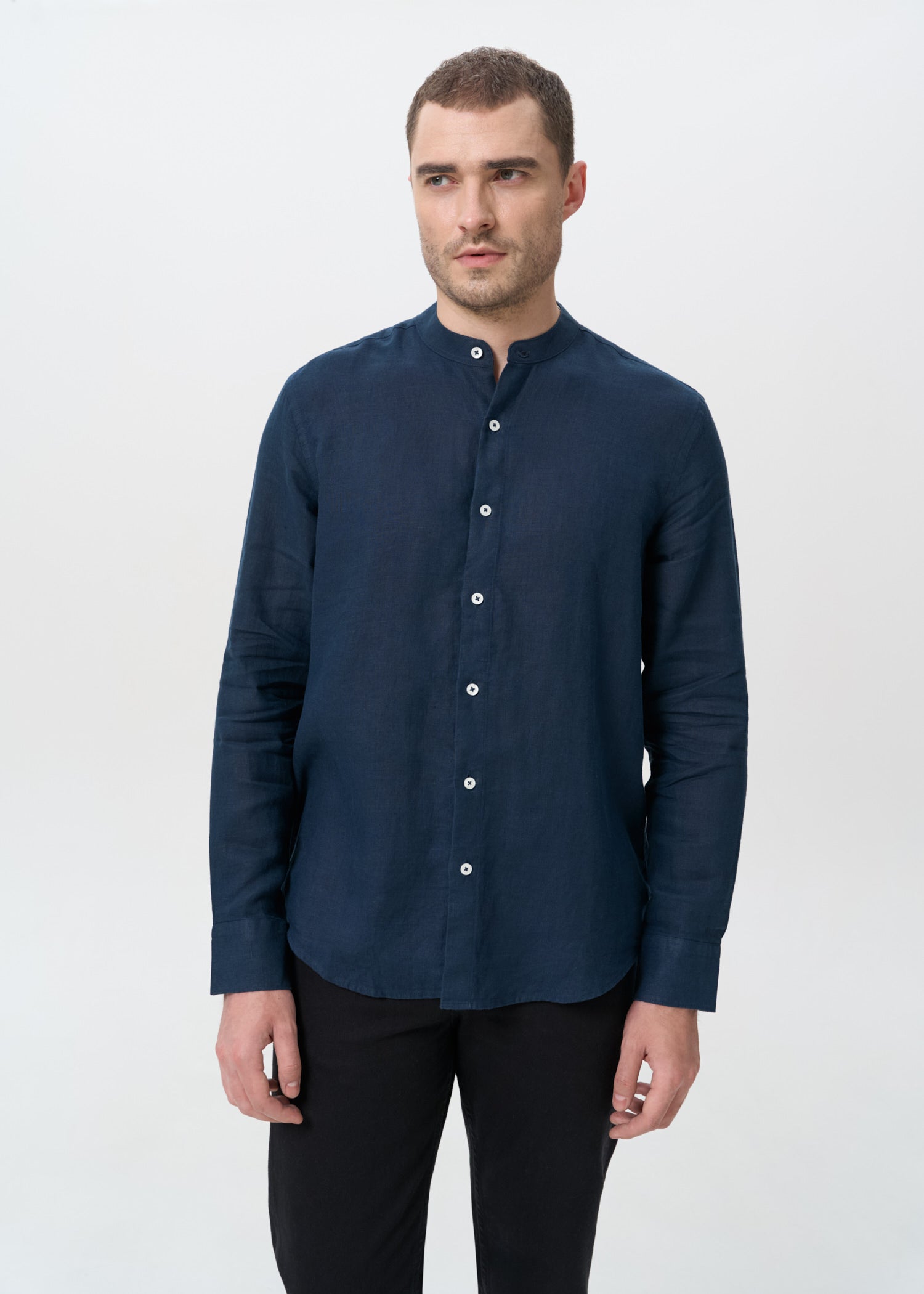 Сорочка синя однотонна чоловіча без коміра із льону