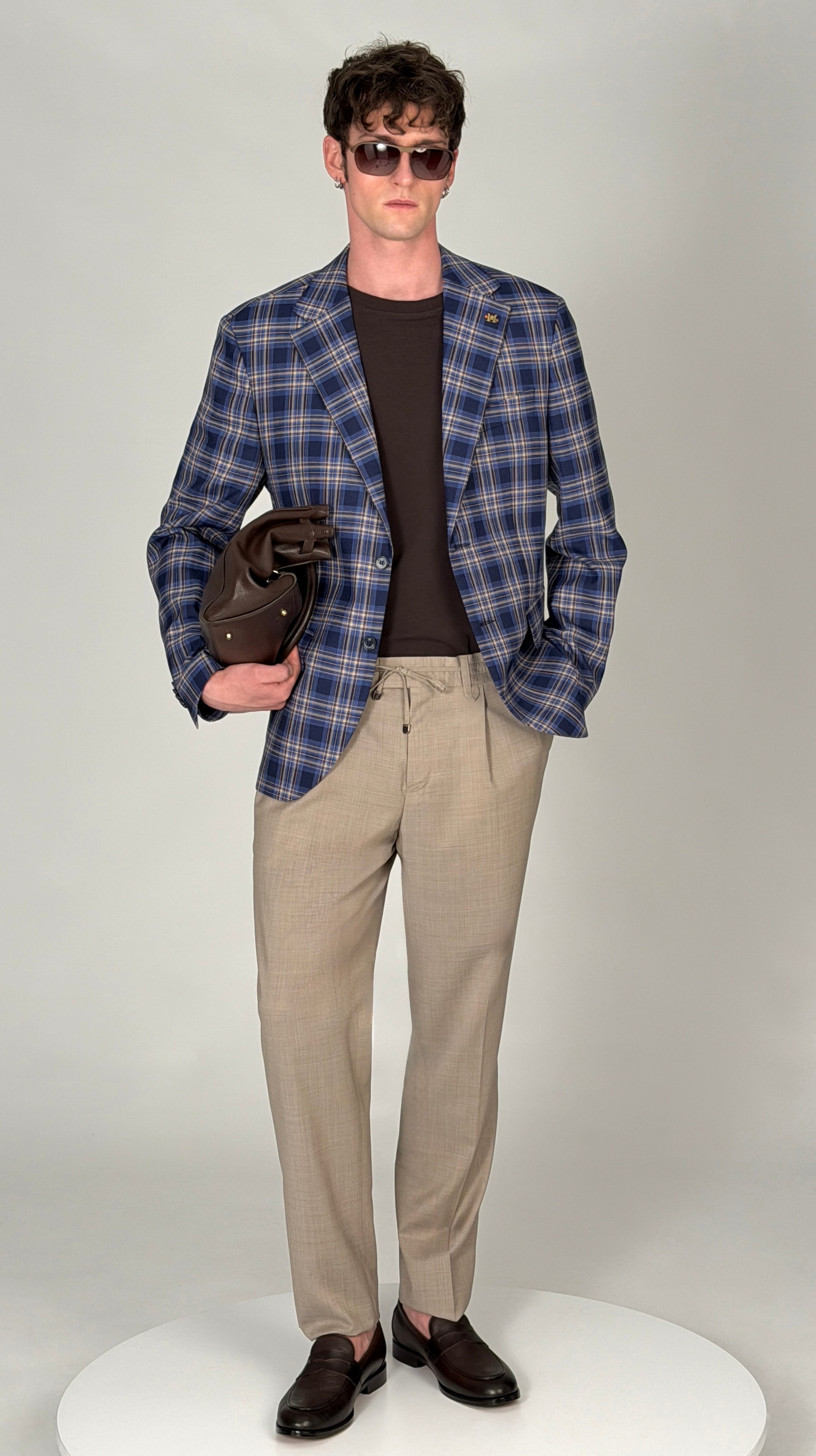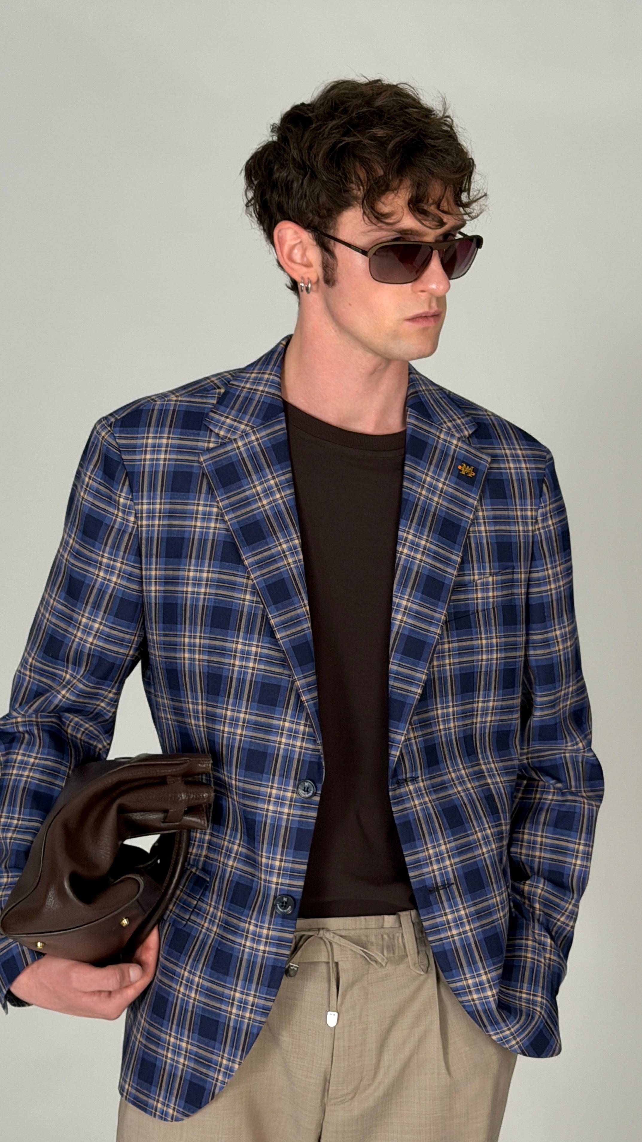 Men’s single-breasted blue and light-blue check suit is an elegant choice for the modern man who values style, lightness, and a well-considered silhouette. The classic check pattern combined with a rich blue–light blue tone creates a distinctive yet restrained look, suitable for both urban and business settings.