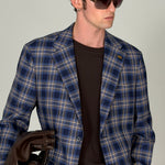 Men’s Blue Single-Breasted Check Suit