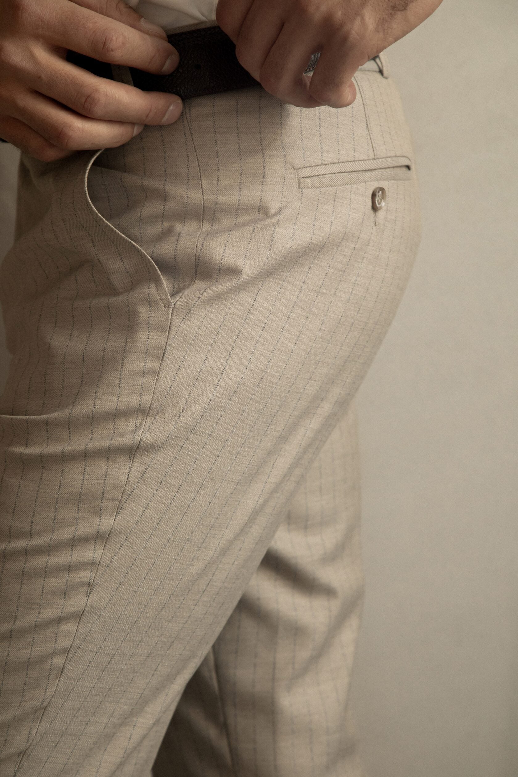 - For trousers, we recommend using special hangers with clothespins or soft clips (for wool trousers). Trousers should always be hung on such hangers with the trousers facing up.