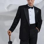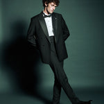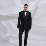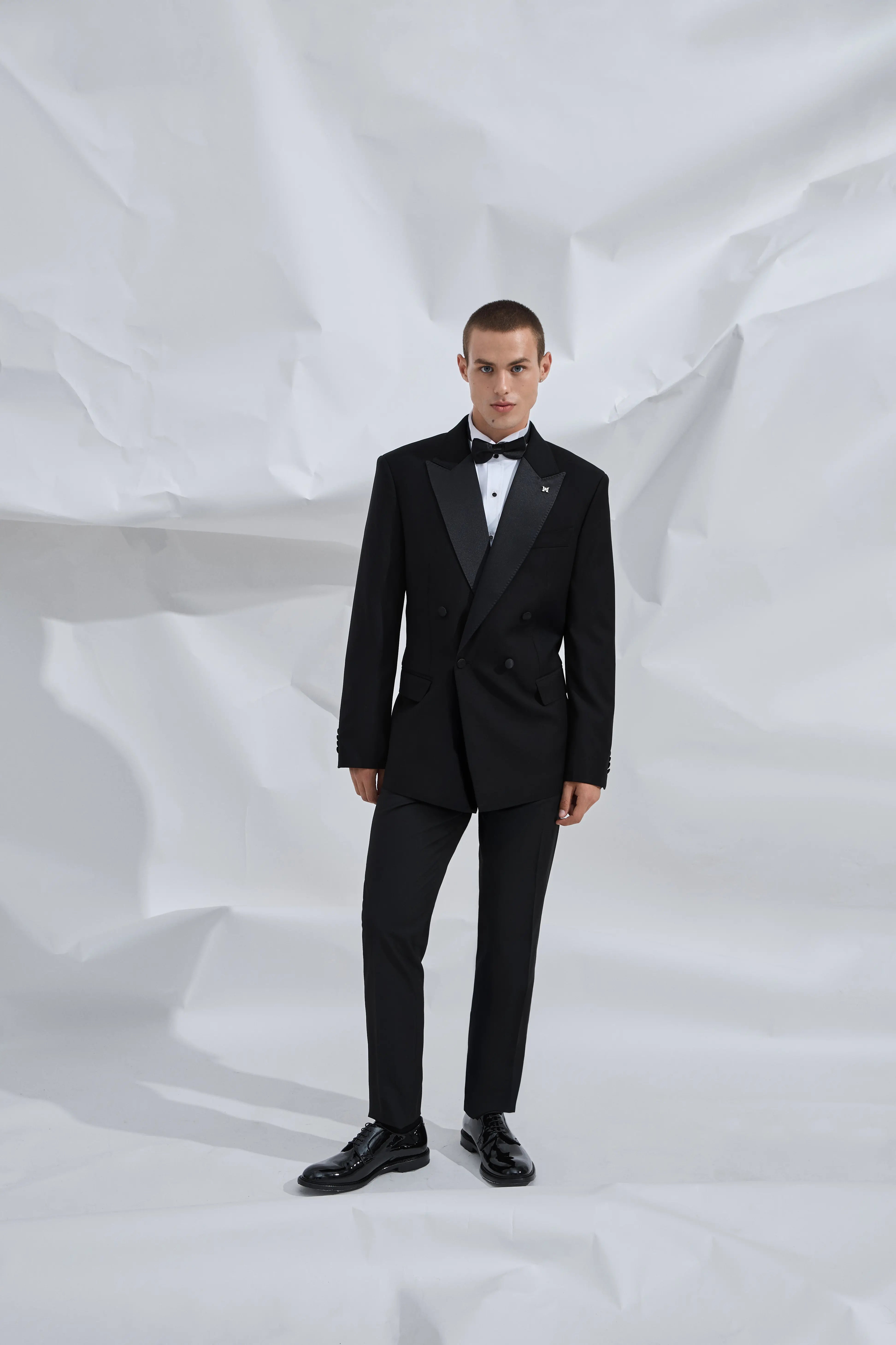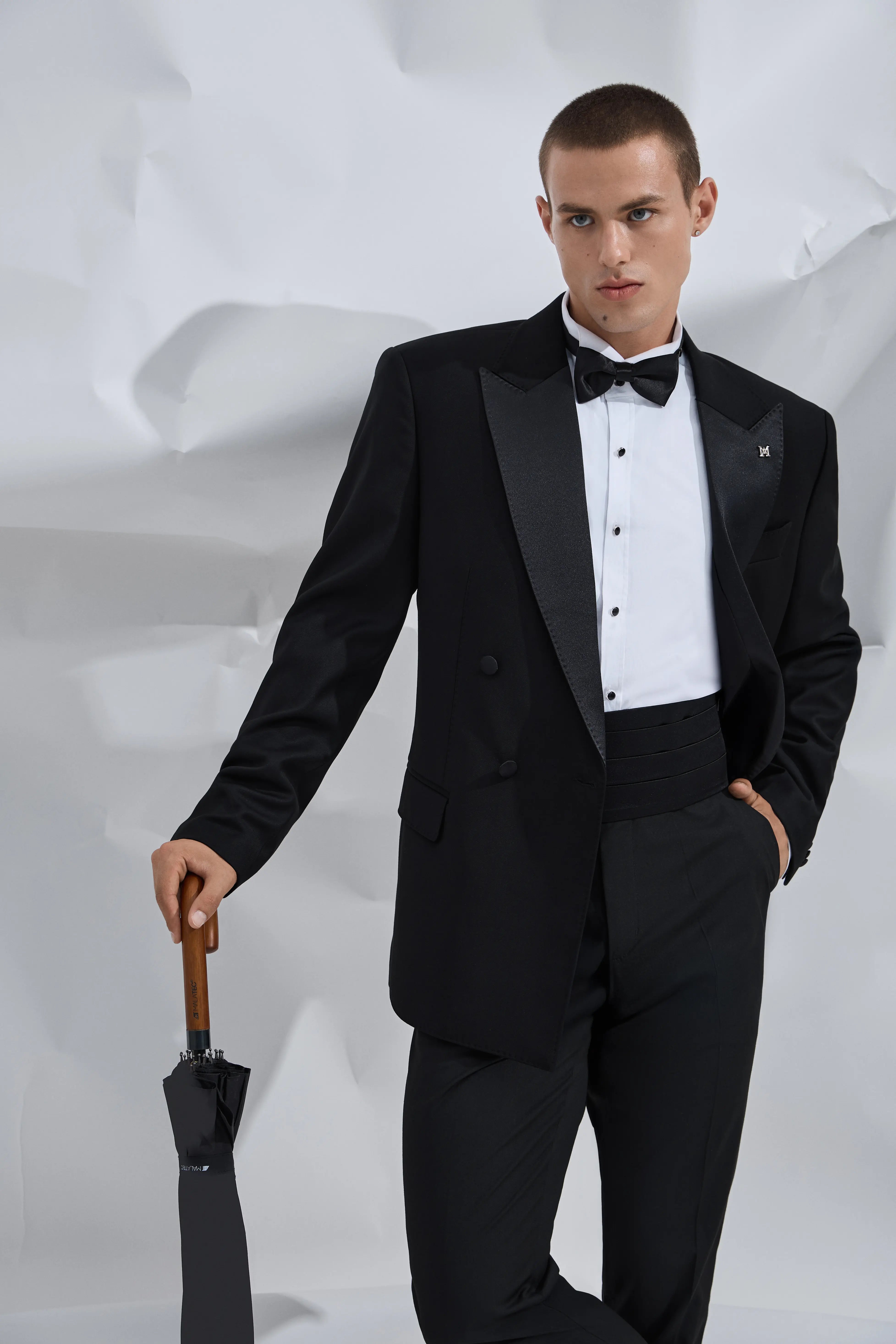 The deep black shade adds a sense of sophistication and versatility, making the suit suitable for formal events, business meetings, or evening occasions.